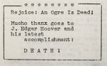 crackinskulls91 Uncategorized October 11, 2018December 18, 2018 1 Minute nokiabae: hi, did you know this is how gay anarchists commemorated J. Edgar Hoover’s death? Share this: Share on X (Opens in new window) X Share on Facebook (Opens in new window) Facebook Like Loading... Related Published by crackinskulls91 View all posts by crackinskulls91 Published October 11, 2018December 18, 2018